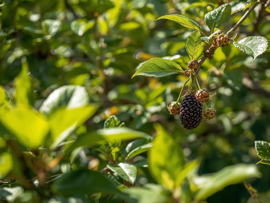 Pruning is important for shaping the mulberry tree, maintaining its health, and maximizing fruit production. Prune young trees to establish a strong framework, selecting several main branches to form a balanced structure. Remove any crossing or crowded branches to improve air circulation and light penetration.
