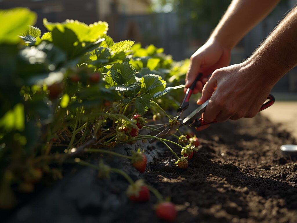 Remove runners if you want larger berries, as allowing too many new plants can reduce fruit size. Cut back old leaves after the growing season to reduce disease risk and prepare the plants for dormancy. Training strawberries in raised beds or containers also aids in better airflow and sunlight exposure, promoting healthier plants and easier harvesting.